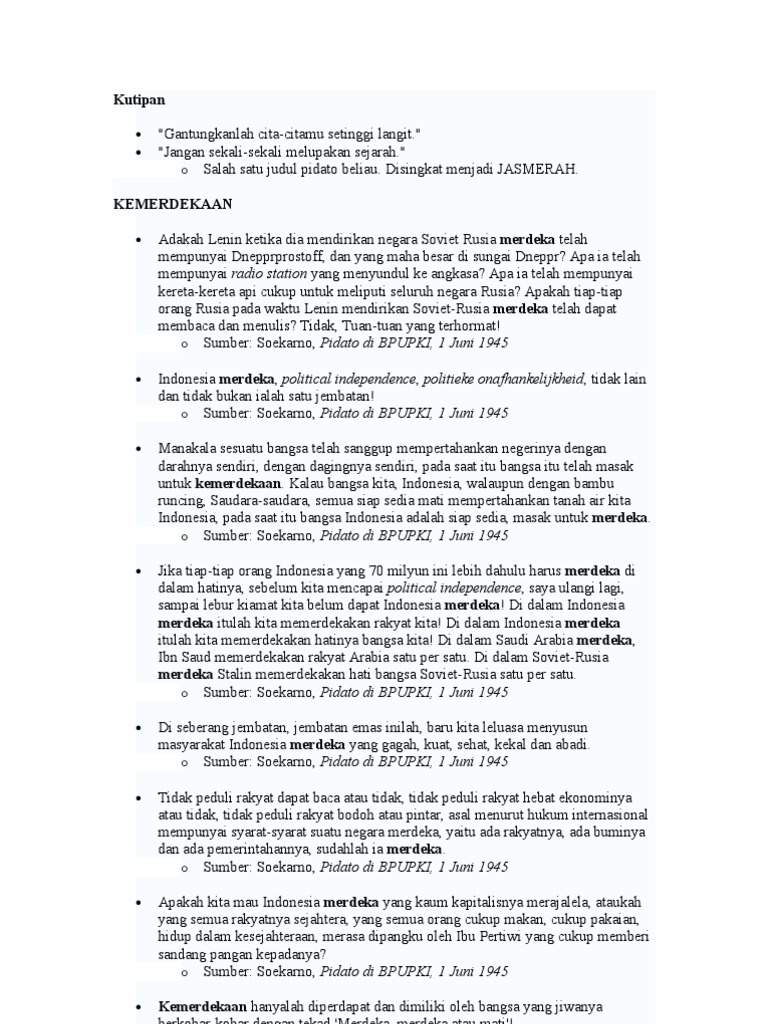 Kutipan Pidato 1 Juni 1945 Hari Lahirnya Pancasila