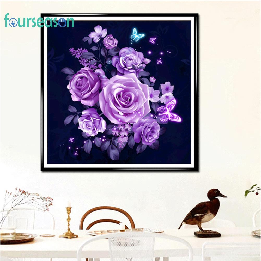 Diy Lukisan Diamond 5d Dengan Gambar Bunga Mawar Warna Ungu Untuk Hiasan Dekorasi Rumah Shopee Indonesia