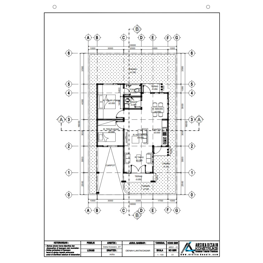 Desain Rumah Uk 10 X 14 M Kode 1 65a Arsika Desain Shopee Indonesia